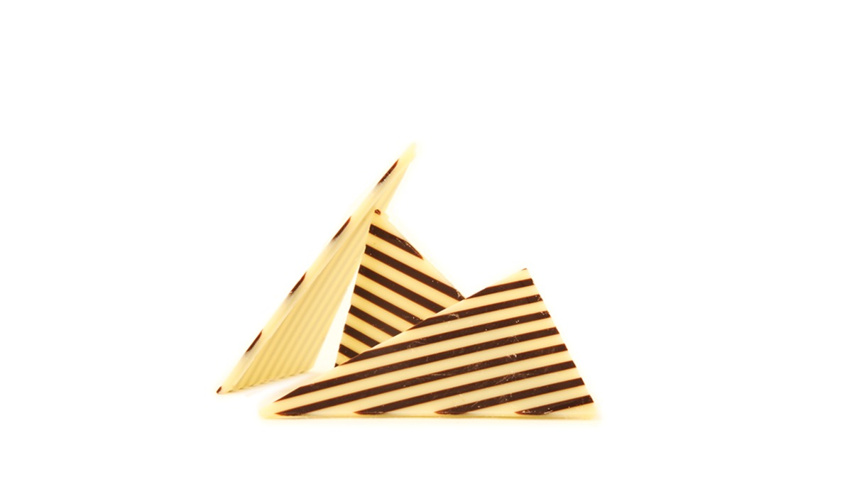 Triunghiuri ciocolata alba cu dungi negre 35x55mm Kosher: da Halal: da